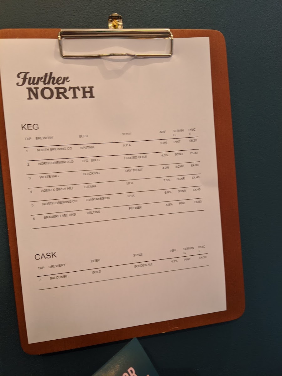 Further North - North Bar offers a straightforward menu centered around quality drinks rather than elaborate food, reflecting its cozy bar and café setting. You’ll find a carefully selected range of beers, ciders, and wines—Northern brewery beers are a particular focus, catering to those who enjoy locally sourced ales.